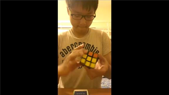 Kevin M. performed a "sexy move" algorithm method on a 3x3 Rubik's cube in 3.53 seconds.