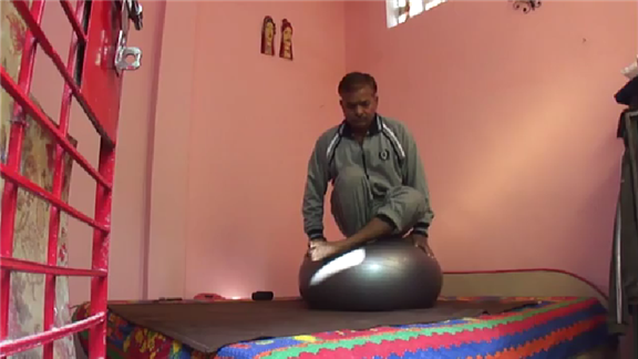 Suresh G. sat on a soccer ball on top of an exercise ball for seven minutes, 40.33 seconds.