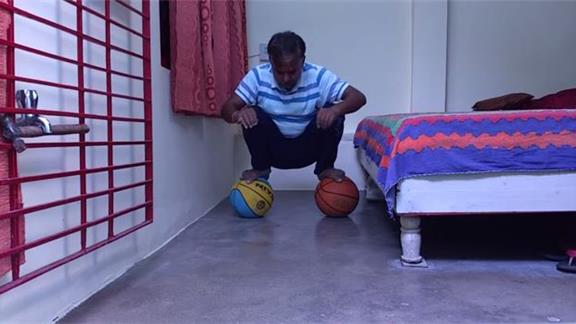 Suresh Gaur performed a squat while balancing on two basketballs for 29.44 seconds.