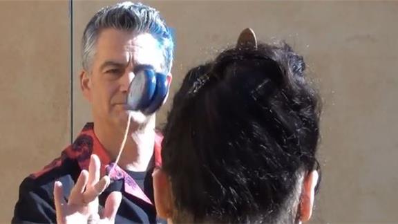 Brad Byers hit a 10.35-millimeter aspirin tablet placed on his assistant's ear using a yo-yo.