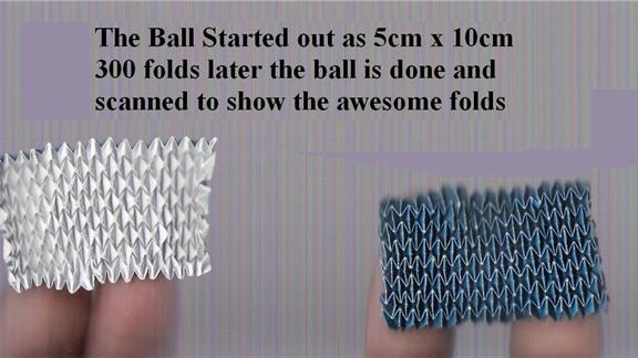 James Anderson created an origami magic ball that is 50 square centimeters (5 cm x 10 cm) in size with over 300 folds.