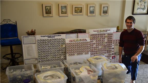 Chris F. has 13,477 Snapple bottle caps in his collection. He has been collecting caps for 10 years. Some of his collections include the Snapple Real Facts caps and caps with a complete sweepstakes winning sequence. He has collected the caps through his local recycling center and through his friends and family.