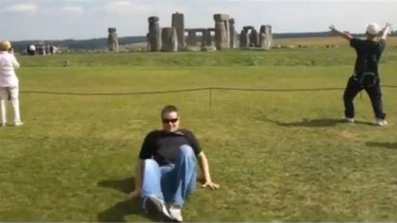 A member of The Barrelrollman Organization performed three somersaults at Stonehenge in Wiltshire, England. The Barrelrollman Organization was formed to raise funds for the Nurses For Newborns Foundation.