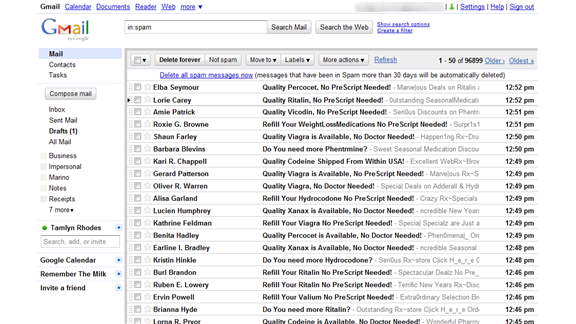 Tamlyn Rhodes has 96,899 spam messages in his email inbox.