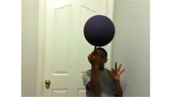 Kenneth Evans spun a basketball on his finger for 5.24 seconds.
