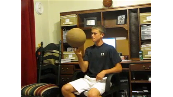 Taylor Thompson spun a basketball on his finger in an office for 25.75 seconds.