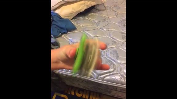 Bralen A. spun three fidget spinners with one hand for 34.15 seconds.