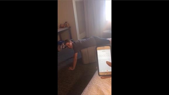 Brendan M. spun on a wheeled Ottoman using his hands 12 times in 30 seconds.