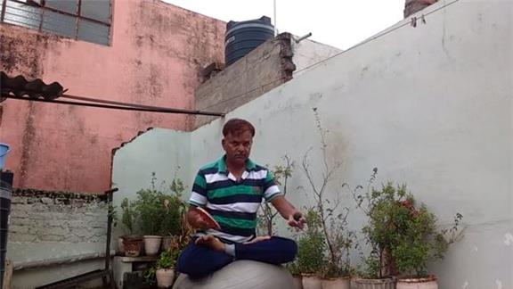 Suresh Gaur bounced a squash ball on alternating sides of a table tennis paddle 138 times while holding the lotus pose on an exercise ball.