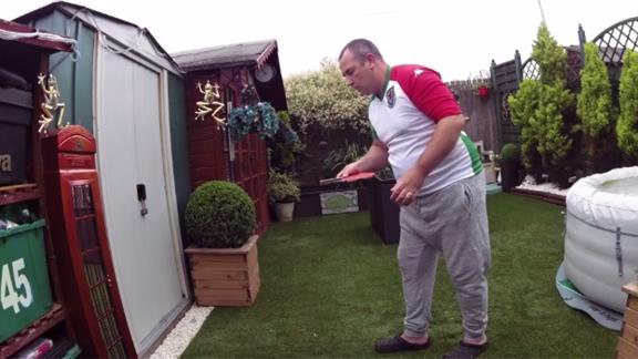 Mark Evans bounced a squash ball on a table tennis paddle handle 478 times.