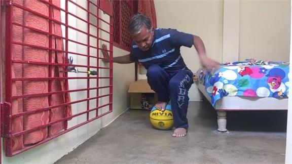 Suresh Gaur squatted on one foot on a basketball for 19.15 seconds.
