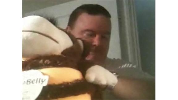 Brian Stevens squeezed his Mushabelly stuffed animal 241 times in one minute. Only squeezes that made squeaks were counted.