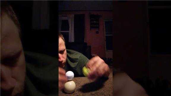 - timing ends when the golf balls are stacked on the cue ball