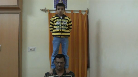 Daksh Choudhary stood straight on his father’s shoulders for 11 minutes, 10.73 seconds.