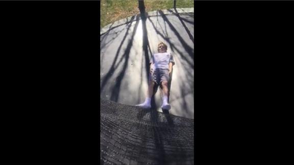 Rylan C. stood up on a trampoline in 2.75 seconds without using his hands.