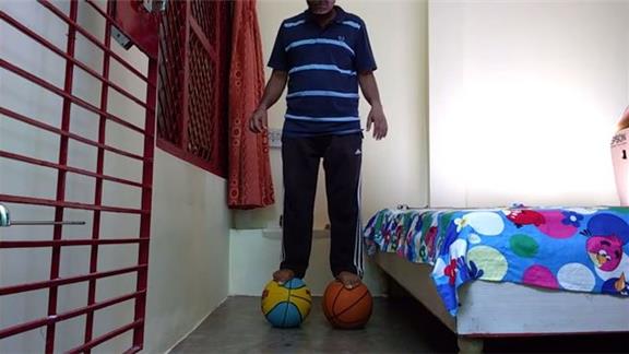 Suresh Gaur stood on two basketballs for two minutes, 48.16 seconds.