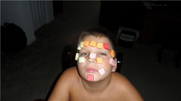 Jason2502 stuck 14 Starbursts candies to her face using saliva.