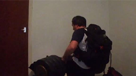 William Cannon completed three strokes stationary rowing while carrying a total of 303 pounds of weight.
