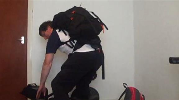 William Cannon completed three strokes stationary rowing while carrying a total of 330 pounds of weight.