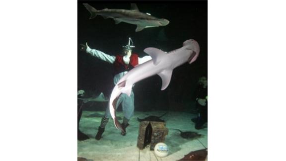 Sword swallower extraordinaire Dan Meyer swallowed a 24-inch sword blade while submerged underwater with sharks, a new world record.