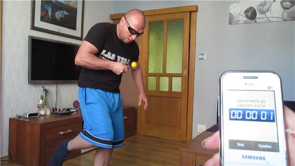 Pavol Durdik bounced a table tennis ball on a knife 214 times in 30 seconds while standing on one foot and wearing sunglasses.