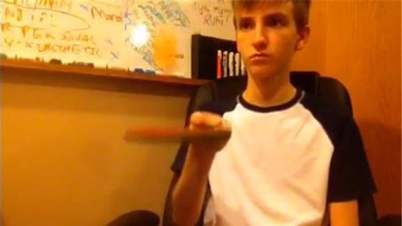 Evan N. bounced a table tennis ball 297 times on a paddle while seated.