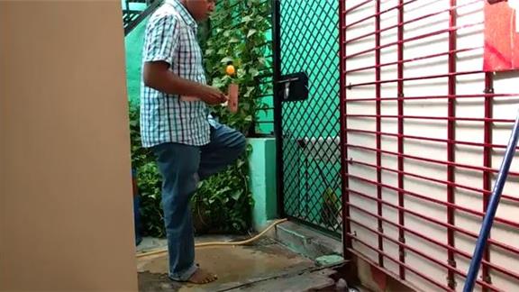 Suresh Gaur bounced a table tennis ball on a wooden mallet 304 times while standing on one leg.