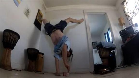 Tai Star stacked a card tower four stories high while performing a one-handed handstand.