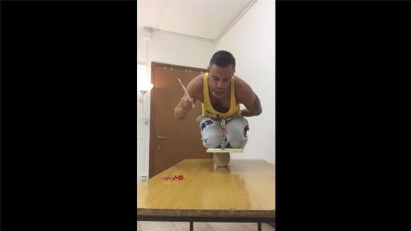 Silvio Sabba stacked 10 dice in a tower while balancing on a balance board.
