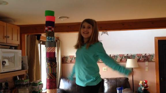 Kaylee P. built a tower of duct tape rolls using 42 rolls.