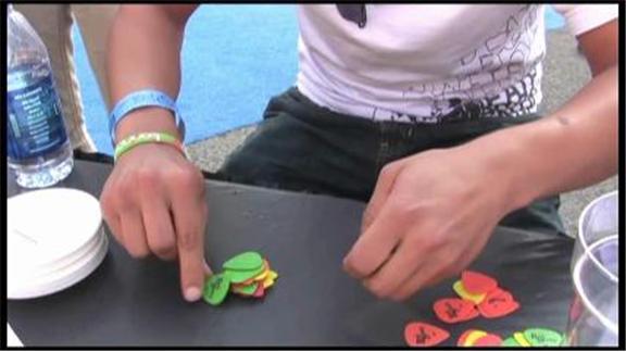 Tom Nguyen stacked 51 guitar picks in 30 seconds. The rules stipulated the picks be placed one at a time, but that re-adjusting the pile once the pick had been placed was acceptable.
