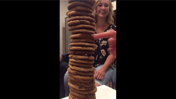 Natalie E. stacked 48 homemade cookies in a tower.
