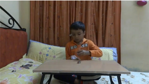 Daksh Choudhary, seven years of age, created a coin tower using 87 Indian coins.