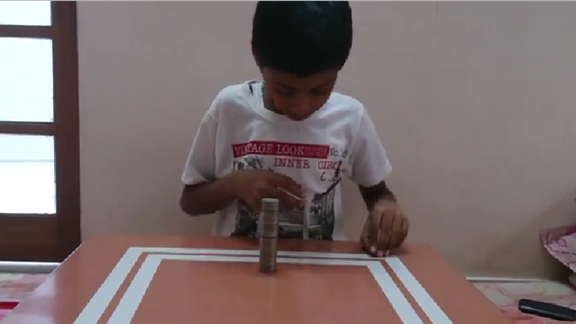 Sanchit B. created a coin tower using 111 Indian coins.