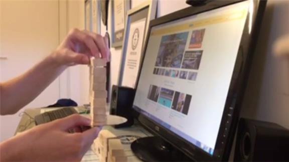 Tallest Jenga Block Tower Stacked On A CD Held In Hand