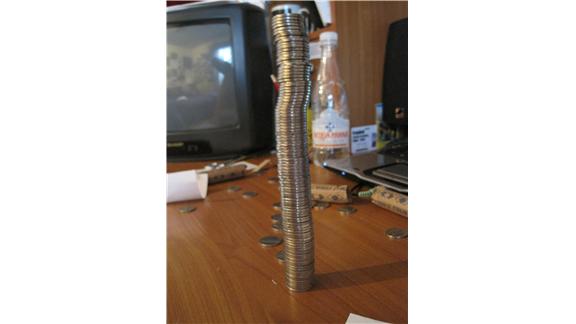 Teddy Sallen stacked 99 American nickels in a single coin tower.