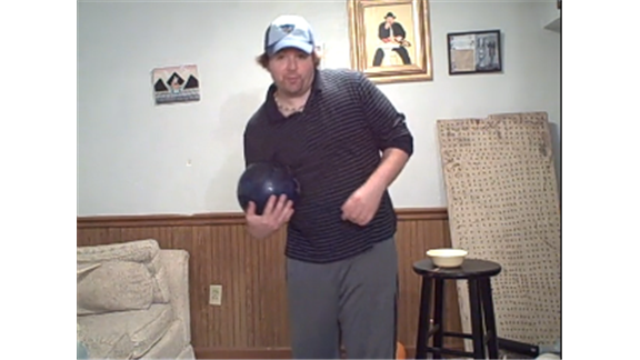 Brian Pankey stacked 27 American pennies on a bowling ball held in his hand.
