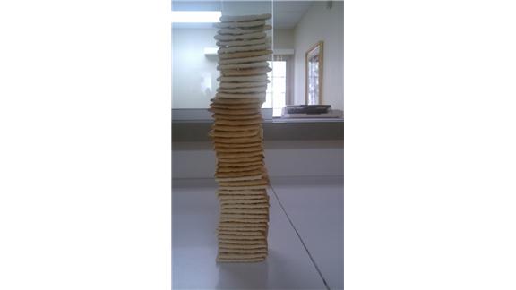 Gerald Saccamade a saltine cracker tower 48 crackers in height.