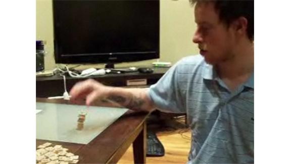 Jaymz Stevens stacked 26 Scrabble tiles on top of each other in one minute, a new world record. He only used one hand to achieve the feat.