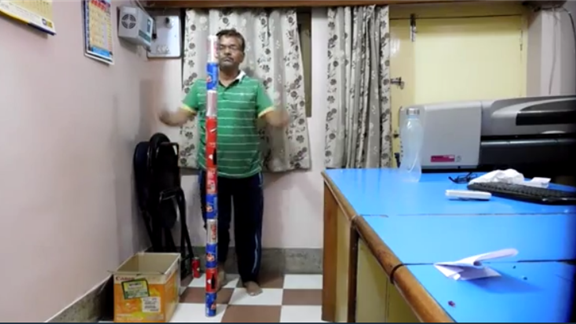 Suresh Gaur constructed a soda can tower 11 cans high in 30 seconds.