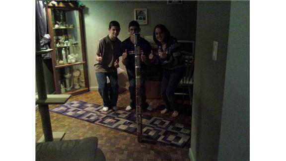 Matt Dalton, Chris Dalton, Amber Oppedisano built a 12-ounce soda can tower 11 cans tall.