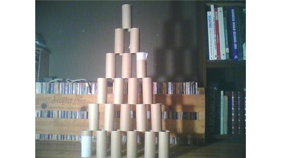 Can the criteria for this record be defined: I'm assuming the "triangle" is specifically NOT a pyramid. Also can the base be slightly curved to allow a higher structure. Also, must each roll be at least 1cm apart as pictured or can they be closer together? Must rolls be ordered in the 4-3-2-1 pattern? Can levels have multiple rows for stability?