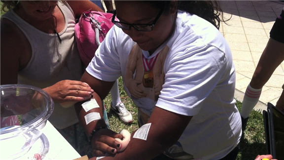 Tiffany Alfonso put on seven temporary tattoos in one minute. The record was set during evian's Live Young, Skate On! event in Miami, Florida.