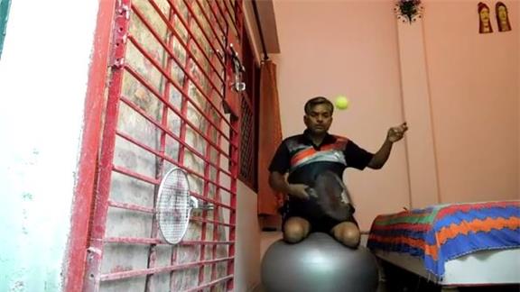 Suresh Gaur bounced a tennis ball on alternate sides of a tennis racquet 178 times while kneeling on an exercise ball.