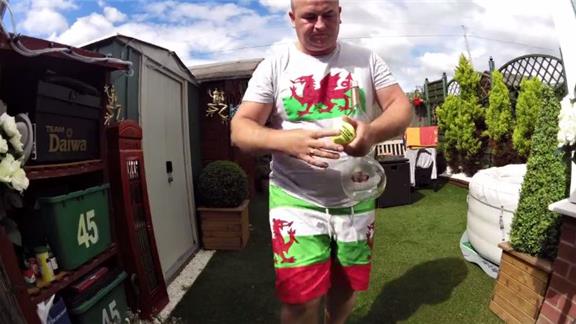 Mark Evans bounced a tennis ball 1,613 times alternately on two wine bottles.