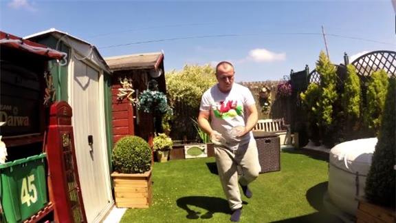 Mark Evans bounced a tennis ball 127 times alternately on two wine bottles While standing on his right foot.