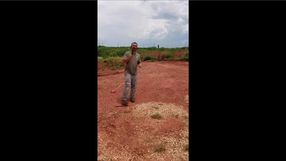 Bill P. threw a tomahawk, hitting a target 80 feet away.