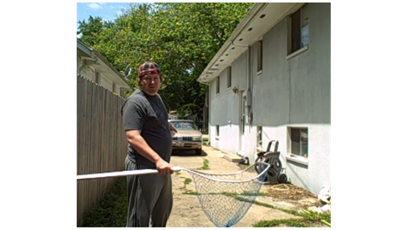 Brian Pankey bounced a baseball off of the side of a building and caught it using a fishing dip net from eight feet away 14 times in 30 seconds.