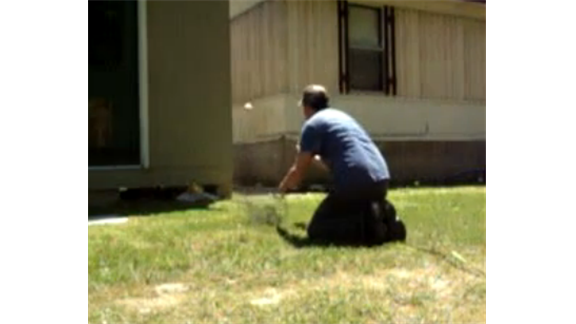 Andy Pelphrey bounced a baseball off of the side of a building and caught it using a fishing dip net from eight feet away 16 times in 30 seconds.
