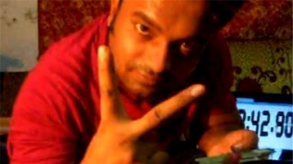Kamal A. performed a "Triple Charlier" card cut in 1.74 seconds while spinning a toothbrush on a pen.